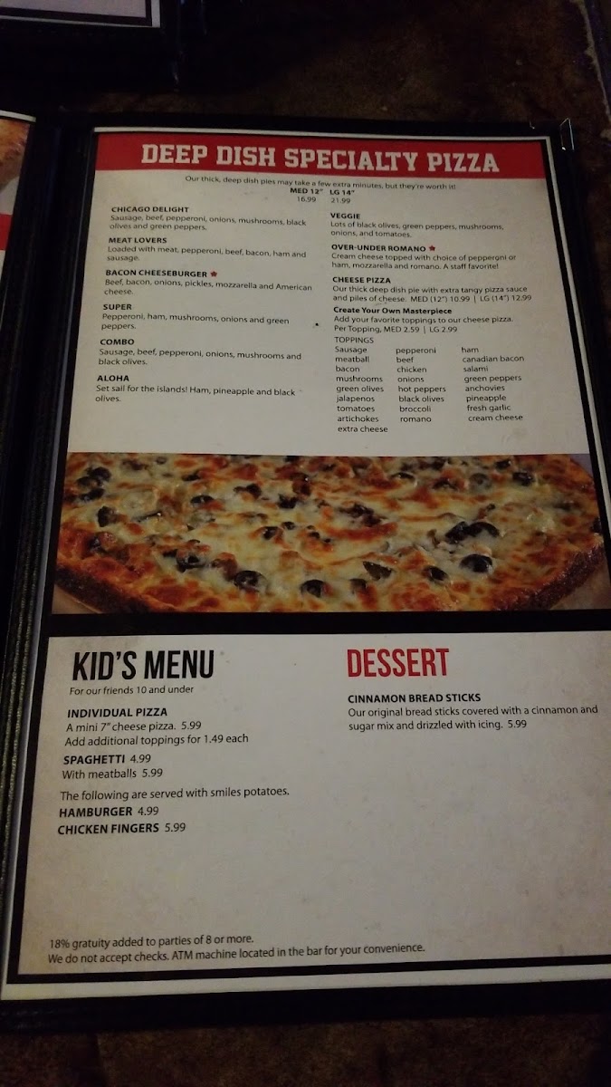 Start with enticing appetizers like Mozzarella Breadsticks and Italian Nachos, featuring seasoned sausage and homemade chips. Their Deep Dish Specialty Pizzas, like the indulgent Bacon Cheeseburger or the veggie-packed Chicago Delight, bring a slice of Chicago right to Omaha. Customers rave about the unique flavor combinations, particularly the bacon cheeseburger pizza with pickles!